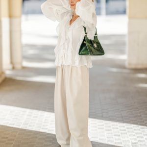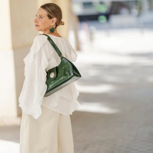 Bolso de piel en color verde botella, con un diseño estructurado y atemporal. Cuenta con cierre de cremallera y detalle superior de botón con imán. Bolsillo interior. Su asa corta y rígida lo convierte en un complemento sofisticado y versátil.