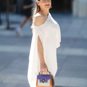 Cuenta con cierre de broche, asa de mano y cadena dorada para llevar al hombro. Un accesorio versátil que aporta un toque original y sofisticado a cualquier look.