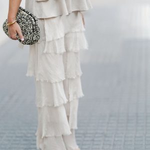 Con un movimiento que no pasa desapercibido, el pantalón de volantes beige lo tiene todo: comodidad, estilo y ese toque que lo hace diferente.